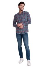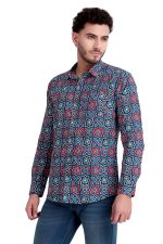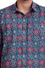 Indigo & Red Jaipuri Handblock Printed Pure Cotton Men’s Shirt
