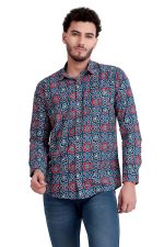 Bold meets traditional in this Jaipuri handblock printed pure cotton shirt. Featuring an indigo-blue base with red and white geometric motifs, it’s stylish, breathable, and perfect for any occasion. A fusion of heritage and modern design — ideal for both festive and everyday wear.