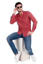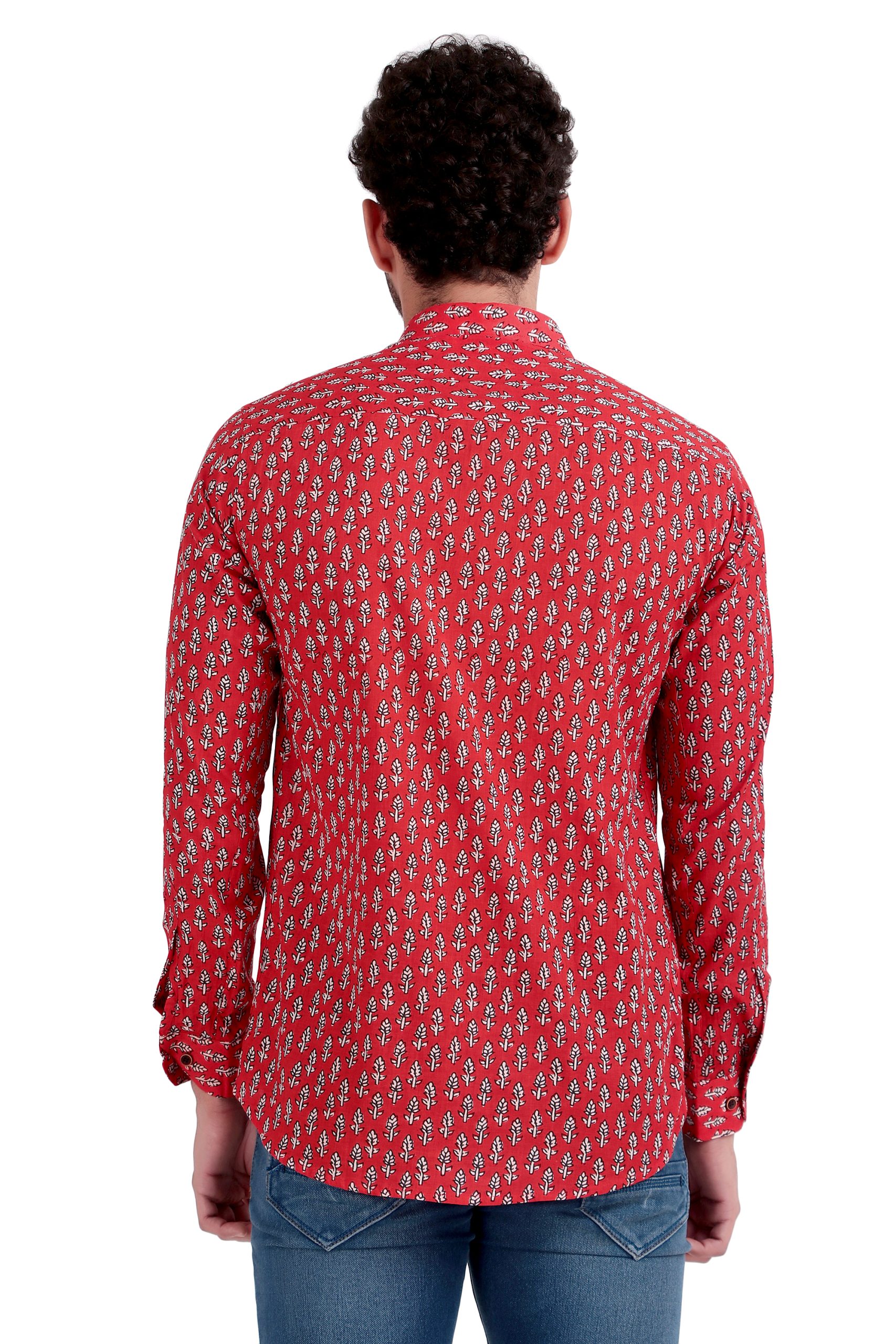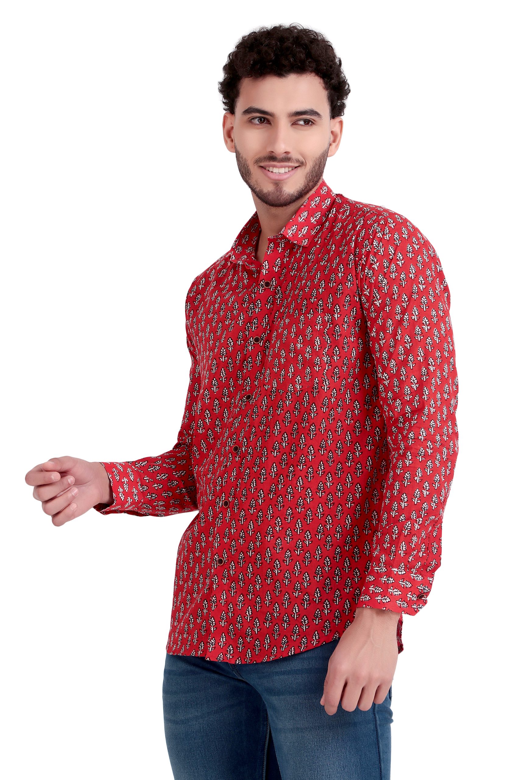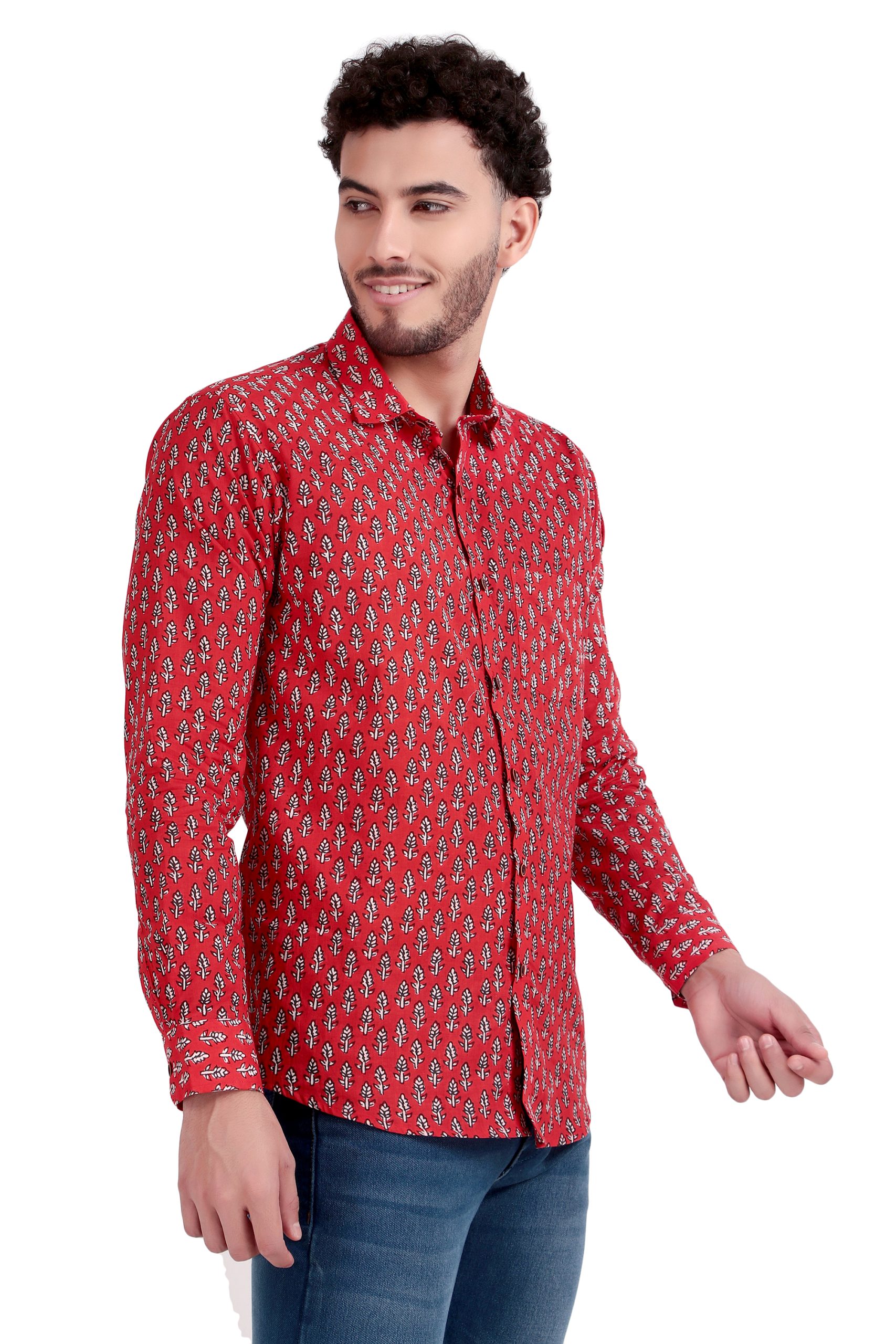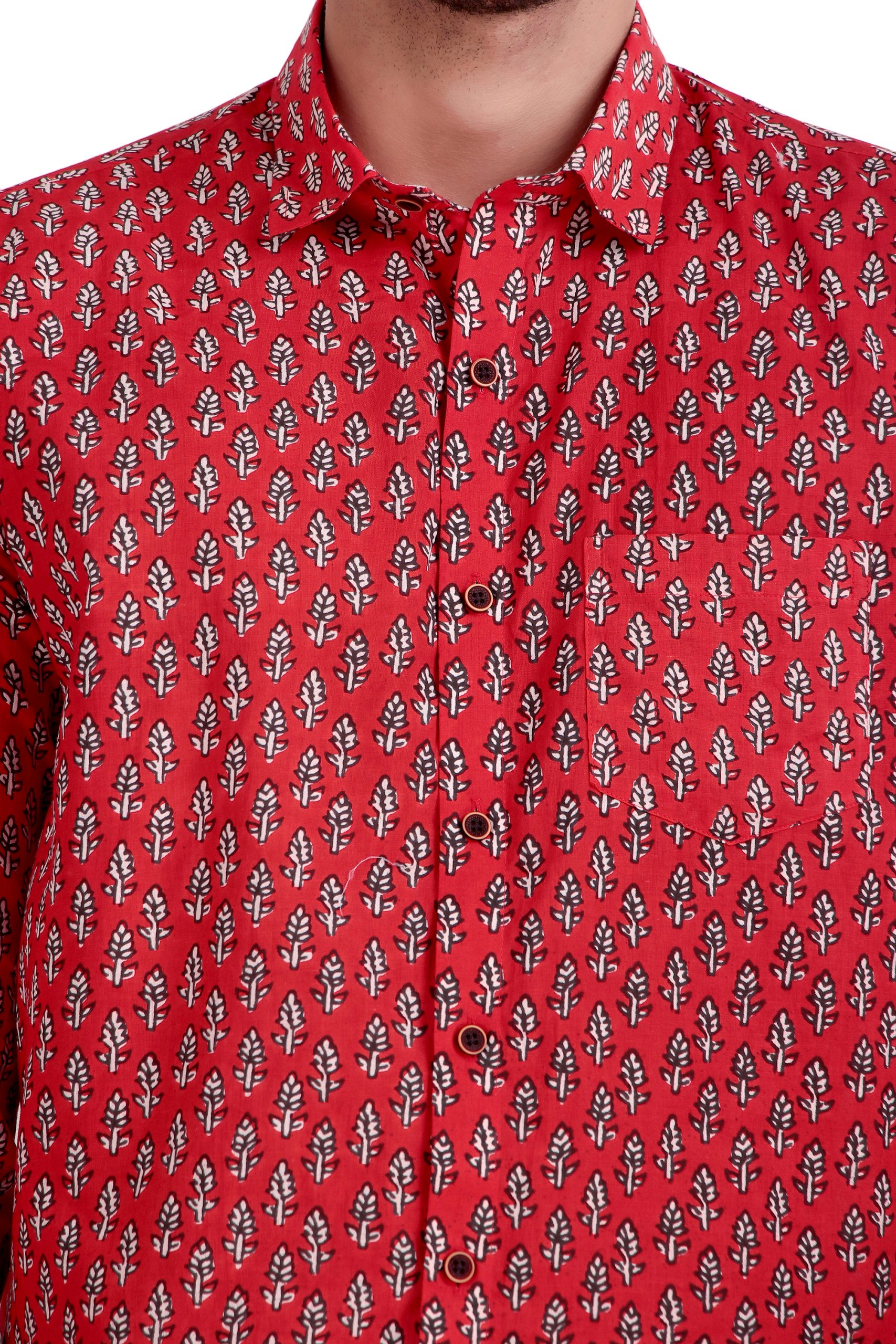 Jaipuri Kalamkari Pure Cotton Handblock Printed Men’s Shirt – Rust Red Geometric Design